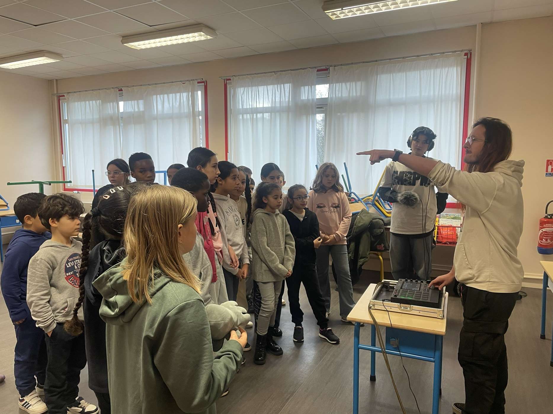 Deux classes de CE2 CM1 CM2 issues de l'école Louis Blanc se sont engagées dans un parcours intensif d'écriture de chansons rap. Accompagnés par Corentin et Pierre (Von VS), ils et elles ont interrogé la notion d'engagement dans le rap, avant de prendre la plume et le micro pour transformer leurs réflexions en prods et punchlines. Le trac risque de s'inviter dans l'aventure, puisqu'iels seront invité·es à partager la scène de la grande salle du Tetris avec Von VS lors d'une grande journée de restitution !