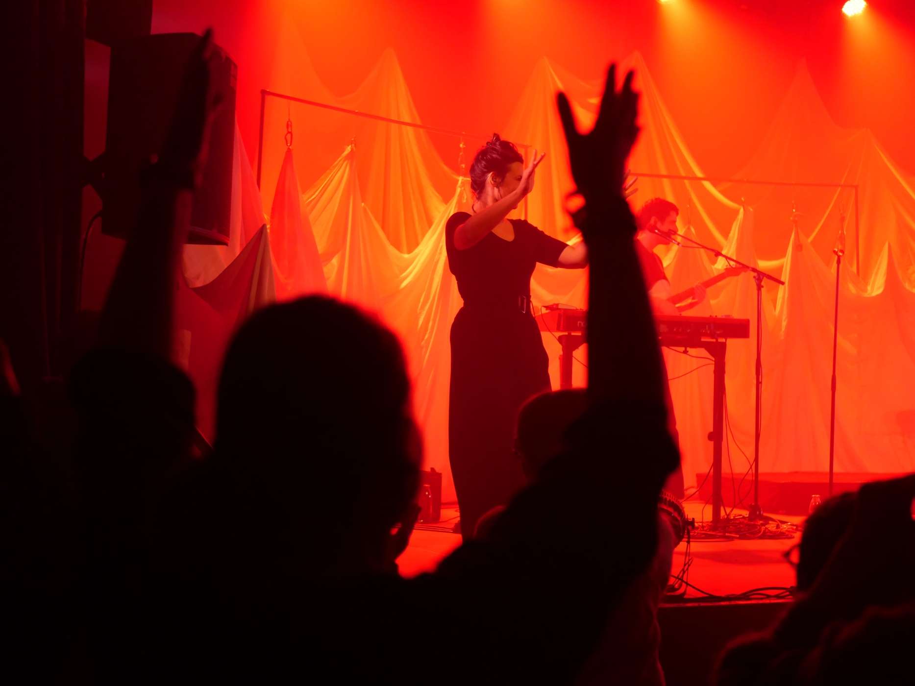 Nouvelle expérience au Tetris... et quelle expérience ! Nous avons eu le plaisir d'accueillir le collectif 10 doigts en cavale lors du concert de Vendredi sur mer le 22 janvier. Deux interprètes ont assuré l'interprétation du set en chansigne, technique qui mêle Langue des Signes et danse afin de transmettre les paroles, mais aussi l'énergie, le rythme et l'ambiance des chansons, à destination des personnes sourdes et malentendantes. Des gilets vibrants (qui retranscrivent les basses des morceaux sous forme de vibrations ressenties par le public sur la poitrine) étaient également mis à leur disposition.